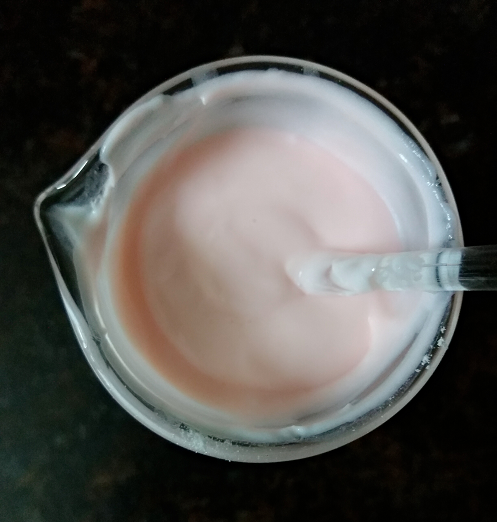 - Trộn cốc 1 vào cốc 2. Dùng đũa thủy tinh khuấy đều hoặc máy khuấy cầm tay. Khi trộn, đưa cánh khuấy đều khắp thành cốc để chắc chắn hỗn hợp được nhũ hóa đều.