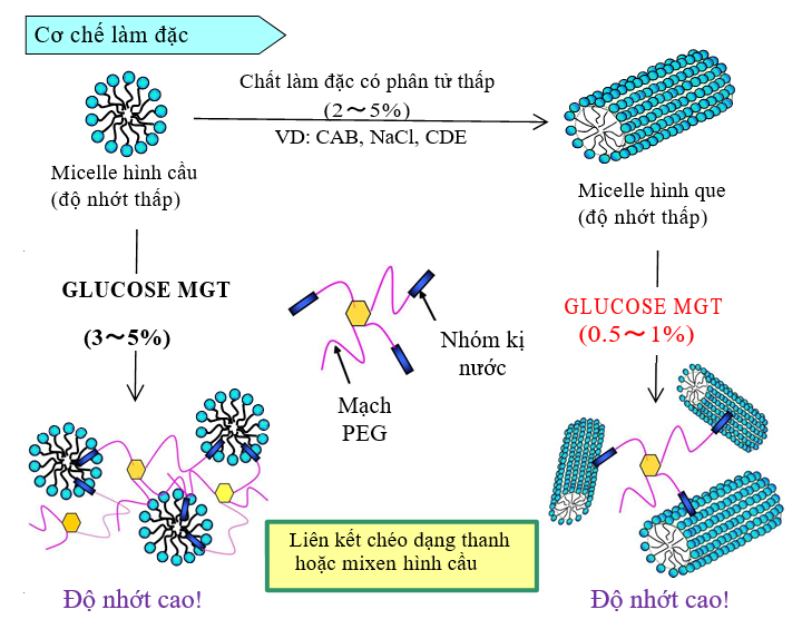 Glucose-MGT là chất làm đặc dạng polyether hiệu quả cao, dễ sử dụng cho tất cả các loại chất hoạt động bề mặt (catioon, anion, không ion, lưỡng tính).