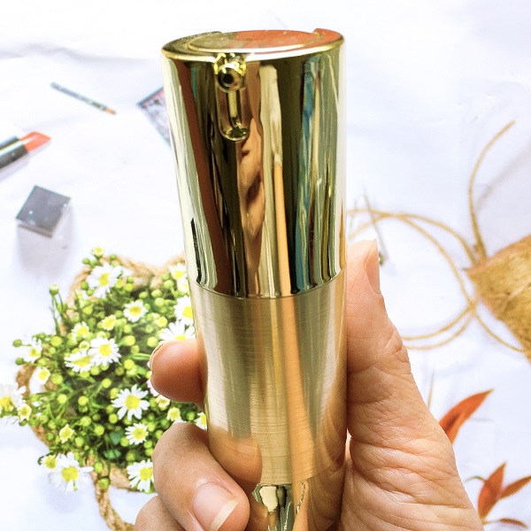 Chai chân không (màu vàng) phù hợp đựng các sản phẩm mỹ phẩm như BB Cream, kem trang điểm, kem dưỡng da, serum. Thân chai được thiết kế để rút hết không khí trong chai, nhằm hạn chế tối thiểu khả năng oxy hoá sản phẩm.