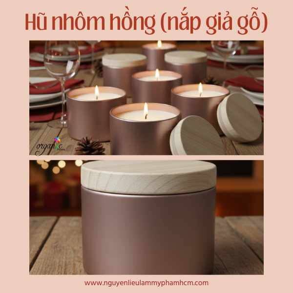 Đặc điểm hũ nhôm đựng nến thơm nắp vân gỗ: