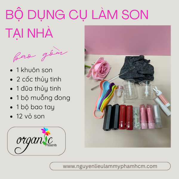 📦 Bộ kit làm son từ nhà Organic đầy đủ từ nguyên liệu đến dụng cụ – chỉ cần mở ra và bắt tay vào làm ngay.
