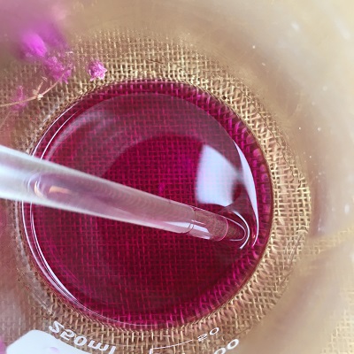 Dùng đũa thủy tinh nhỏ một giọt màu lên giấy để điều chỉnh màu