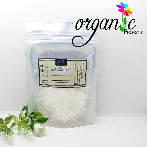 Sáp đậu nành có dạng vảy, mùi thơm nhẹ của đậu, sáp đậu nành giúp thỏi nến thơm mềm hơn, mùi hương dễ lan tỏa hơn.