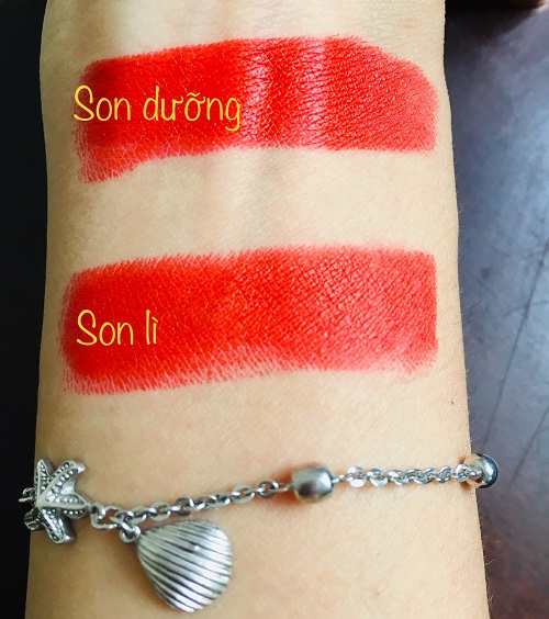 - Chất son dưỡng: mềm, nhẹ mướt môi, có phần bóng nhẹ trên môi vì công thức có lượng dầu dưỡng môi cao
