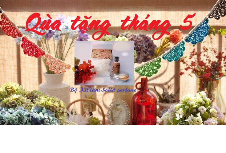 Bộ kit làm nước hoa khô (Solid perfune) bao gồm các nguyên liệu sau: Sáp đậu nành, hương nước hoa (tự chọn) và hũ/vỏ.