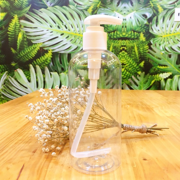 Chai PET nhựa trong suốt trụ tròn, chứa được 300ml phù hợp đựng gel rửa tay sát khuẩn, sữa tắm, dầu gội.