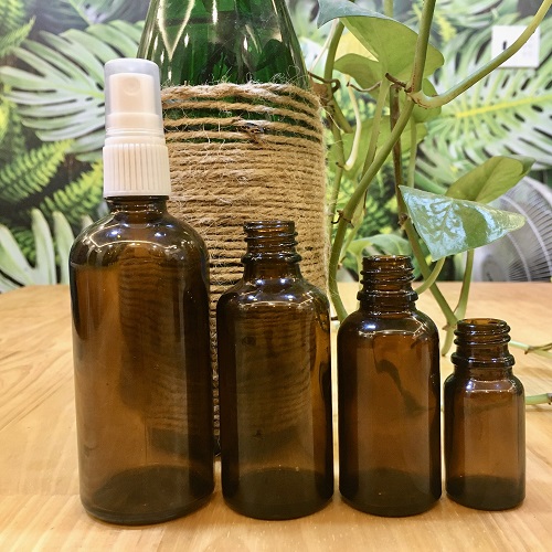 - Chai đựng mỹ phẩm bằng thủy tinh nâu