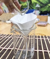 Mở một góc tư giấy lọc, đặt giấy lọc vào phễu thủy tinh