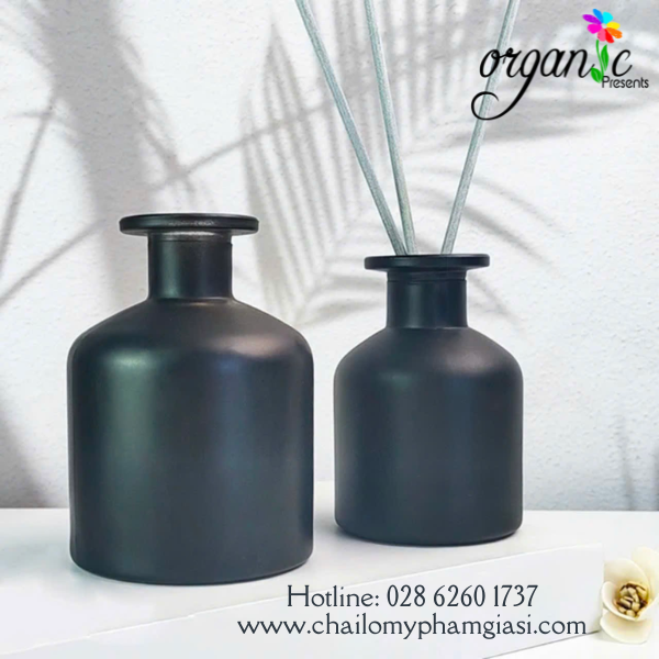 - Chai khuyếch tán tinh dầu màu đen nhám chứa được 100 ml thành phẩm.