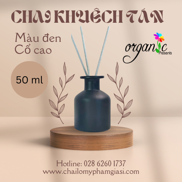 - Chai khuyếch tán tinh dầu màu đen nhám chứa được 50 ml thành phẩm.