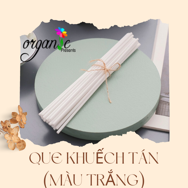 Que khuếch tán đường kính 3 mm, dài 25mm. Lõi que khếch tán có nhiều ống dẫn, thấm hút tinh dầu từ trong lọ và phát tán hương thơm ra khắp phòng, dùng que khuếch tán không hề thua kém đèn xông và máy phun sương.