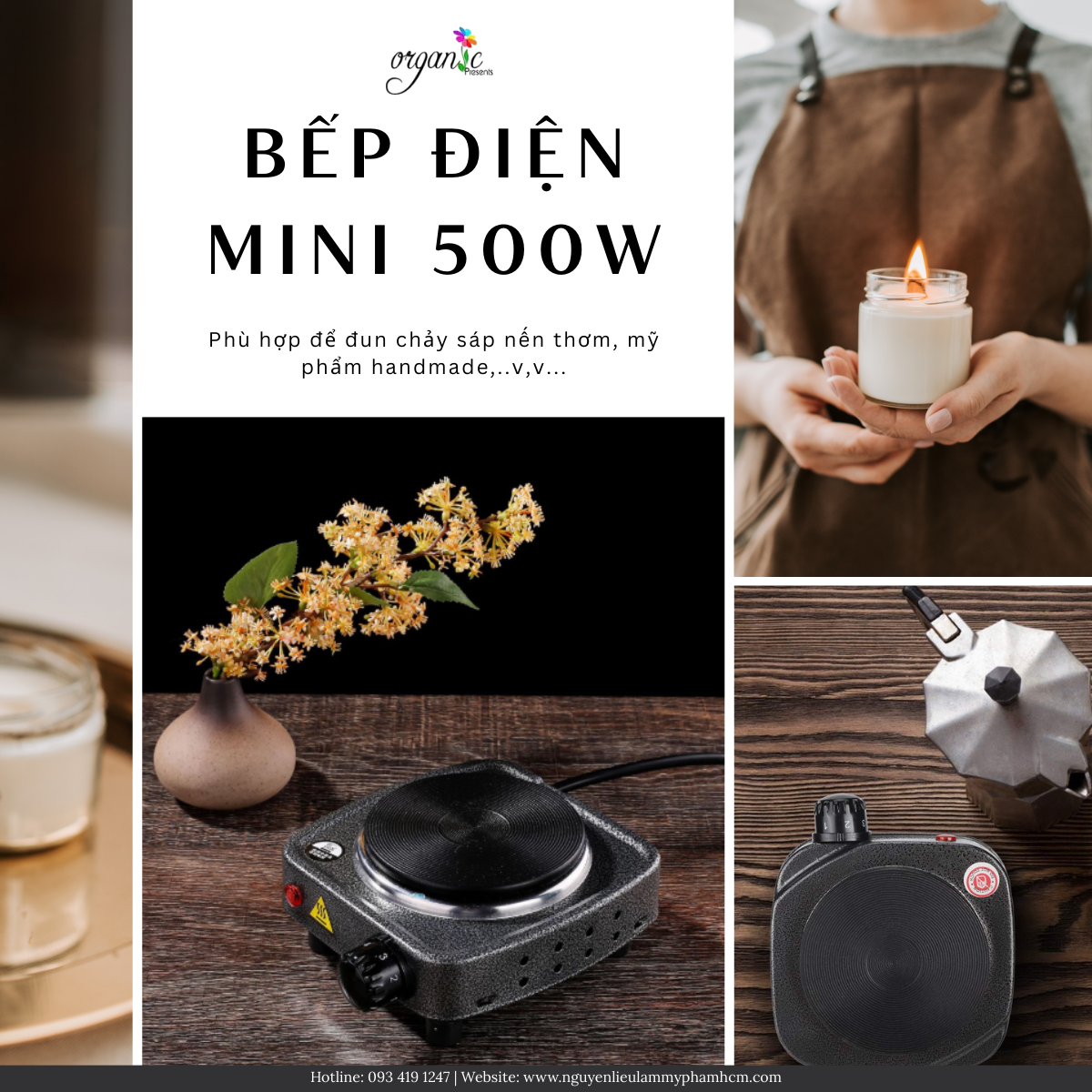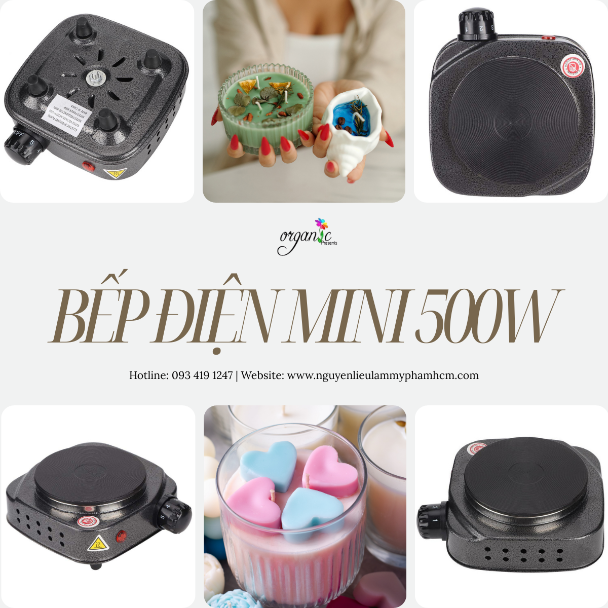 Đun nấu nguyên liệu làm mỹ phẩm handmade: Bếp điện mini 500W thường được sử dụng để đun chảy các loại sáp, bơ thực vật hoặc dầu trong quá trình làm son môi, son dưỡng và các sản phẩm mỹ phẩm handmade. Công suất vừa phải giúp nhiệt tăng dần, hỗ trợ kiểm soát nhiệt độ tốt hơn khi nấu nguyên liệu.