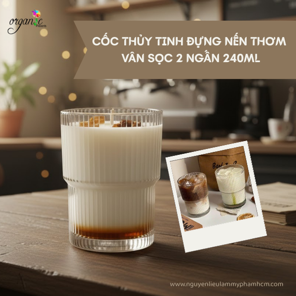 Bề mặt vân sọc không chỉ mang lại vẻ sang trọng mà còn có tác dụng chống trượt hiệu quả khi bạn thao tác rót sáp nóng. Với dung tích 240ml, cốc có kích thước vừa vặn để đặt trên bàn làm việc, kệ sách hoặc trang trí không gian sống.