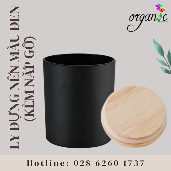 Ly thủy tinh phủ bóng, màu đen chứa được 150g sáp nến, thắp nến trong khoảng 22 - 24 giờ (tùy vào kích thước tim nến).