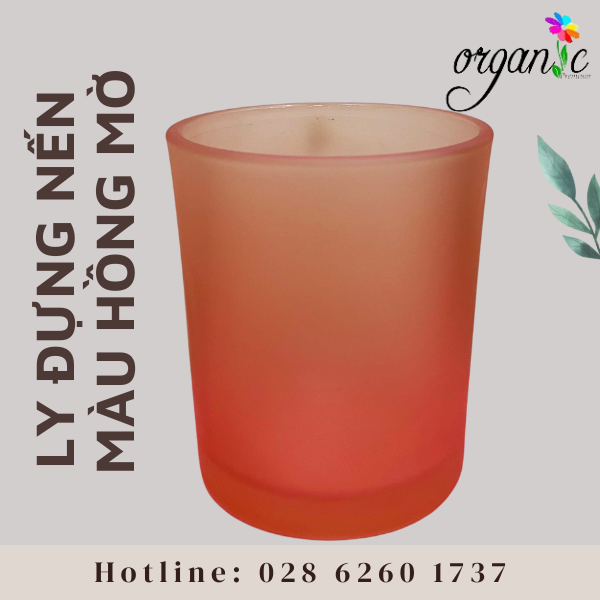 Ly thủy tinh phủ mờ, màu hồng phun mờ chứa được 150g sáp nến, thắp nến trong khoảng 22 - 24 giờ (tùy vào kích thước tim nến).