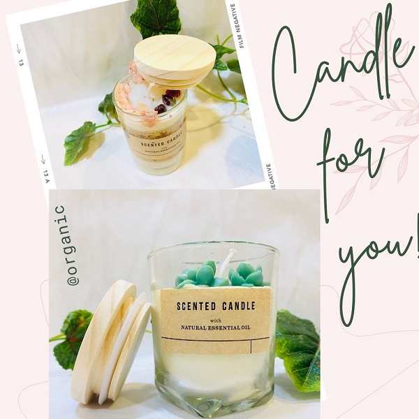 - Trang trí bên ngoài bằng dây thừng, sticker; bên trong bằng hoa khô (lưu ý không trang trí hoa gần bấc, hoa sẽ cháy khi đốt nến thơm)