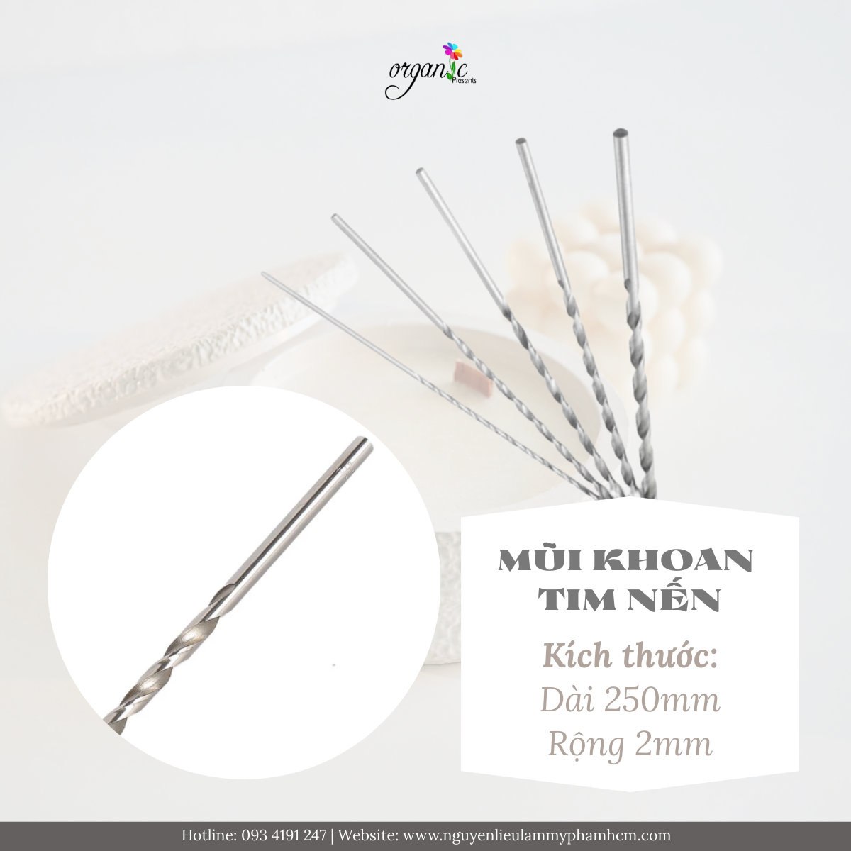 Phù hợp với nến khuôn silicon hoặc nến tạo hình: Đối với các mẫu nến có hình khối hoặc hoa văn phức tạp, việc khoan lỗ bằng mũi khoan xoắn có thể giúp thao tác nhẹ nhàng hơn so với dùng kim nhọn thông thường.