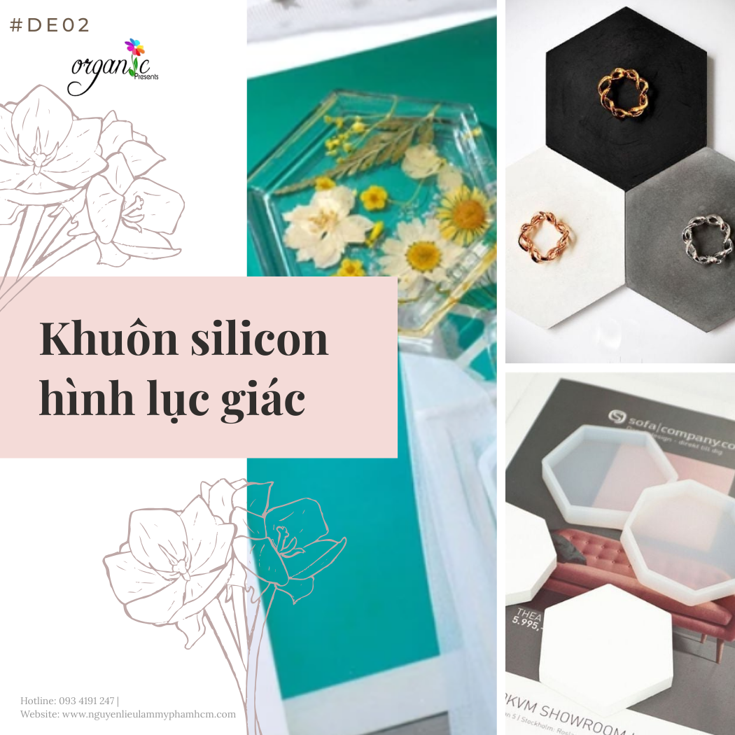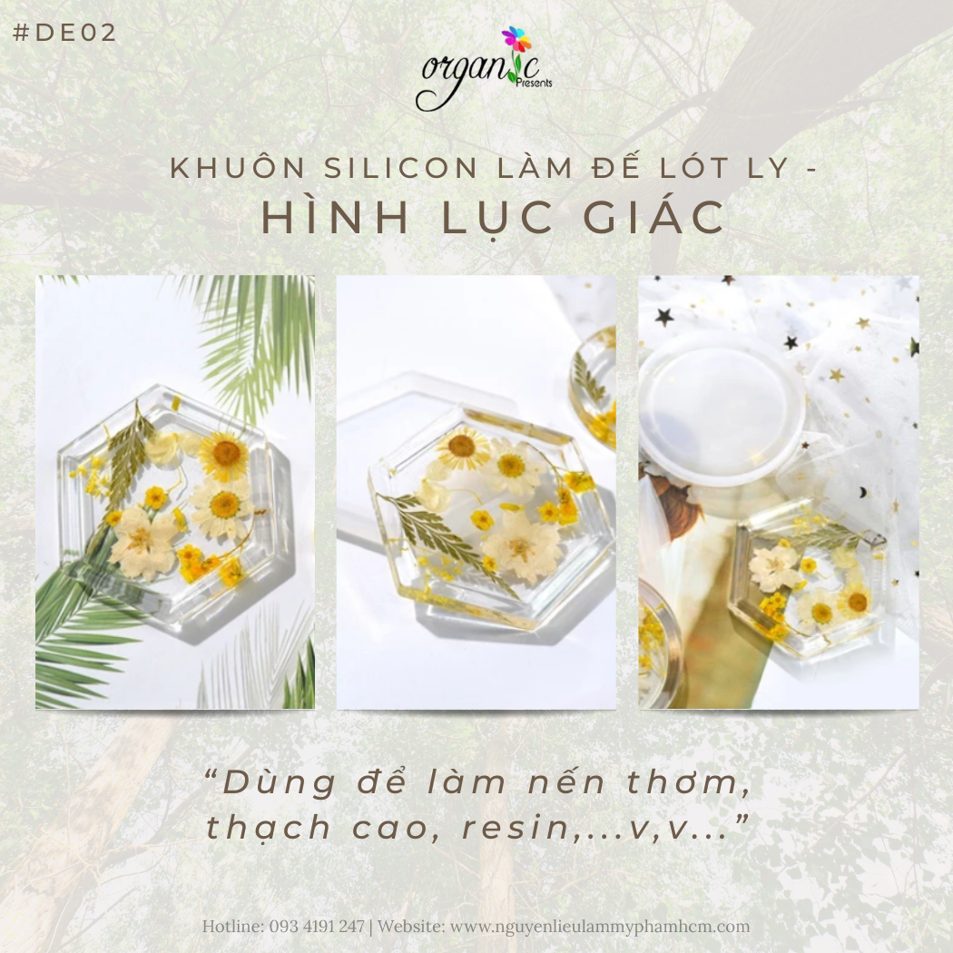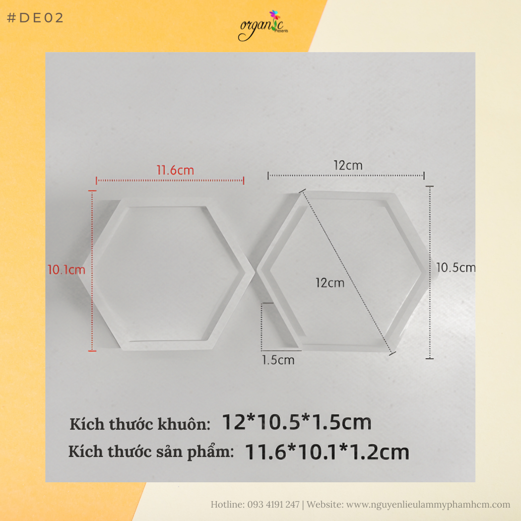 Bên cạnh hình dáng lục giác đặc trưng, khuôn DE02 được sản xuất từ silicon chất lượng có độ trong suốt vừa phải, giúp bạn dễ dàng quan sát bố cục bên trong khi sắp xếp hoa khô, kim tuyến hay các hạt trang trí. Độ dày của thành khuôn được tính toán kỹ lưỡng để giữ form dáng chuẩn, không bị biến dạng khi đổ lượng lớn resin hay thạch cao vào bên trong.
