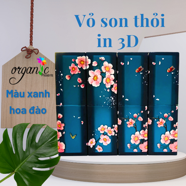 VỎ SON HANDMADE (IN 3D - MÀU XANH HOA ĐÀO)
