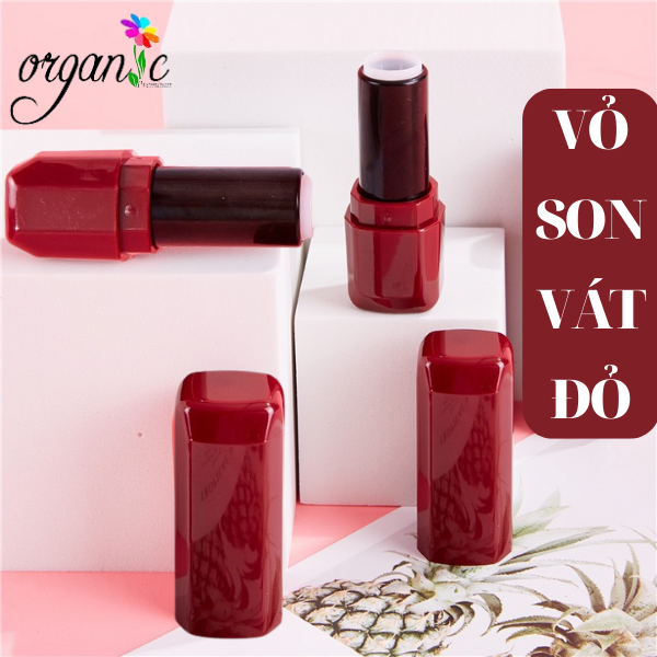 Vỏ son dành cho son thỏi đổ khuôn 12.1 mm; thiết kế màu đỏ đô, cạnh vát. Vỏ son phủ nhựa bóng, đẹp. Vỏ son phù hợp cho các dòng son dưỡng môi và son màu.