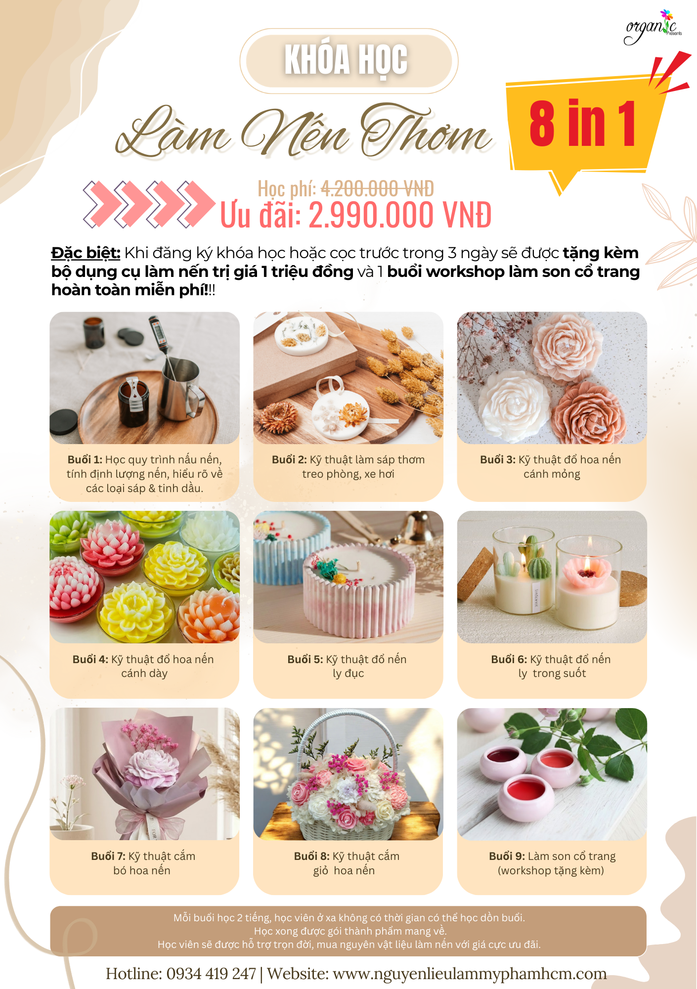 CÁCH THỨC THAM GIA LỚP HỌC LÀM NẾN THƠM HANDMADE TẠI ORGANIC?
