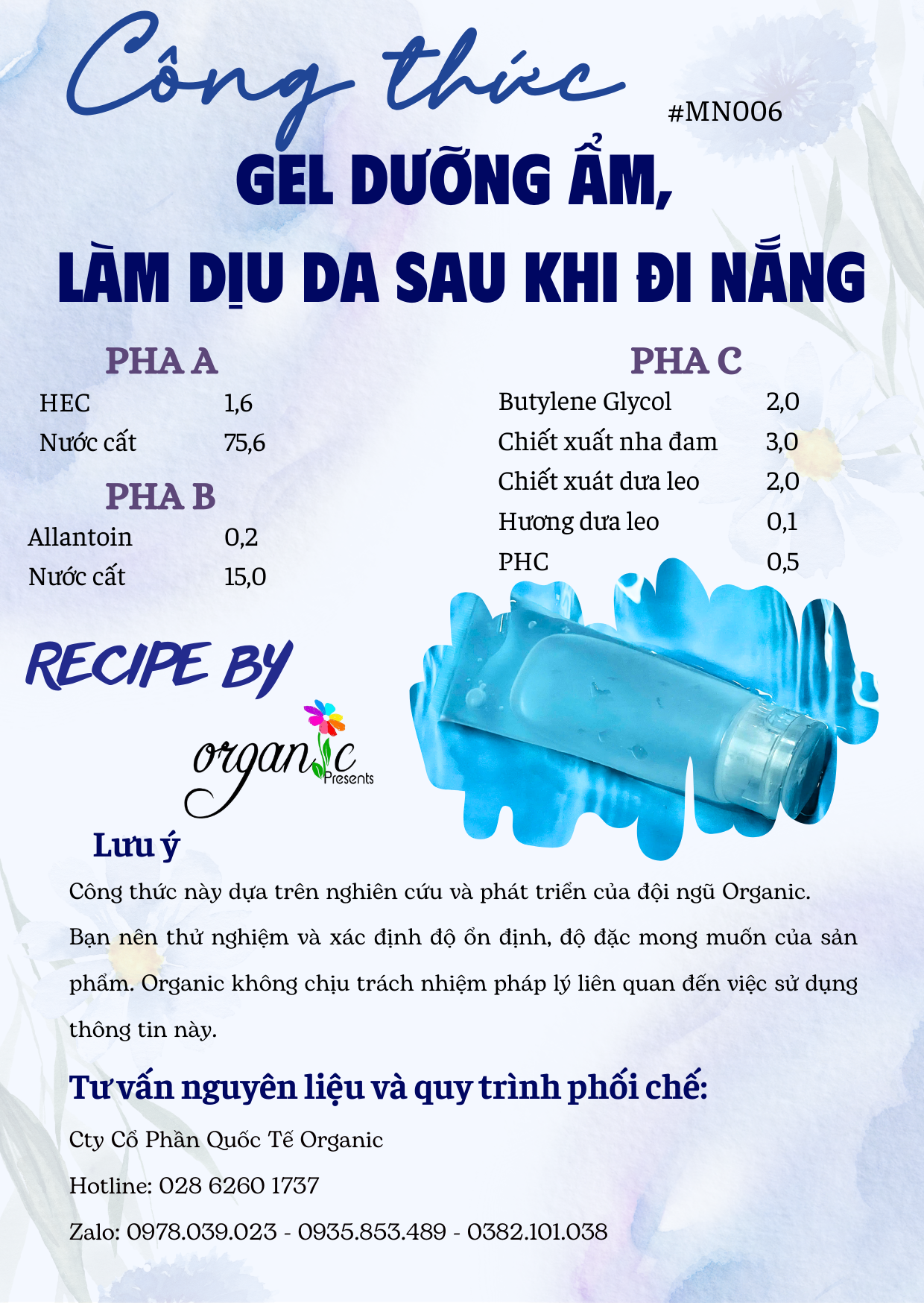 THÀNH PHẦN LÀM NÊN CÔNG THỨC GEL DƯỠNG ẨM, LÀM DỊU DA SAU KHI ĐI NẮNG