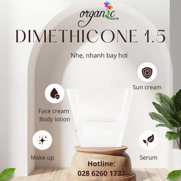 Lưu ý: Dimethicone 1.5 dễ bay hơi nên cần bảo quản đậy kín. Nếu trong công thức có tác động nhiệt thì nên thêm dimethicone 1.5 vào pha hạ nhiệt hoặc nên làm nhanh chóng tránh tình trạng hao hụt.