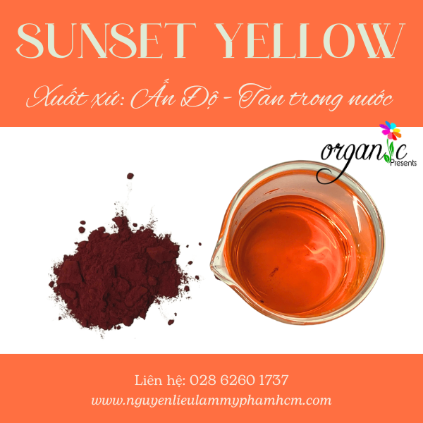 Lưu ý: Màu Sunset Yellow phụ thuộc vào tỉ lệ bột cho vào (tỉ lệ càng nhiều thì màu càng đậm và ngược lại)