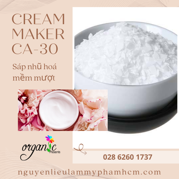 Cream Maker CA-30 là một hỗn hợp không ion của cetylstearyl alcohol và ceteareth-30, hoạt động như một nền tự nhũ hóa với đặc tính nhất quán. Cream Maker CA-30 được sử dụng để phối chế trong các công thức dầu trong nước (O/W) như các loại kem dưỡng, mỹ phẩm dành cho tóc và da.