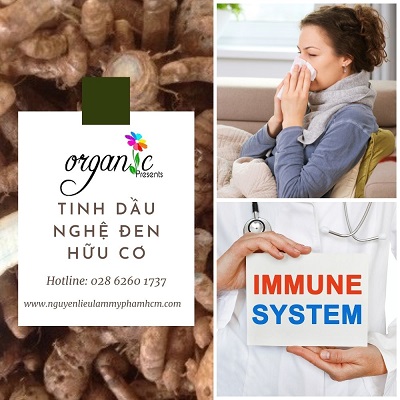 Thêm 5 – 6 giọt tinh dầu nghệ đen hữu cơ vào một chậu nước nóng, trùm một chiếc khăn lớn trên đầu và hít vào hơi mạnh trong 5 – 10 phút. Hơi nước nóng sẽ làm loãng đờm và đặc tính kháng khuẩn của dầu nghệ giúp chống lại vi trùng cảm lạnh và cúm. Hiện tượng kích ứng ở mũi cũng như cổ họng cũng sẽ được giảm bớt.