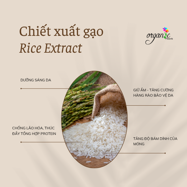 Chiết xuất gạo giúp móng bám chắc vào nền móng, hạn chế hiện tượng móng bị tróc hoặc dễ bong tróc do yếu.