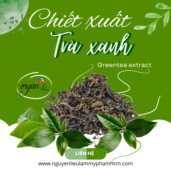 Chiết xuất trà xanh là thành phần thiên nhiên giàu chất chống oxy hóa, giúp làm dịu da, giảm viêm và hỗ trợ chống lão hóa hiệu quả. Với khả năng kiểm soát dầu và hỗ trợ làm sáng da, chiết xuất trà xanh thường được sử dụng trong sữa rửa mặt, toner, mặt nạ và kem dưỡng. Nhẹ dịu, phù hợp với da nhạy cảm và da mụn, nguyên liệu này mang đến làn da khỏe khoắn, tươi tắn từ thiên nhiên.