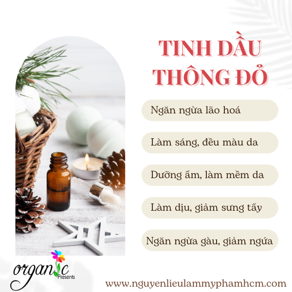 Tinh dầu thông đỏ là một chất chống viêm tự nhiên giúp cải thiện tự nhiên mụn trứng cá, bệnh chàm, bệnh vẩy nến, mụn cóc.