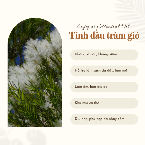Tinh dầu tràm gió không chỉ là một loại tinh dầu quen thuộc trong y học cổ truyền mà còn là nguyên liệu tiềm năng trong các sản phẩm mỹ phẩm thiên nhiên hiện đại – vừa chăm sóc da, vừa mang lại cảm giác dễ chịu, thư giãn cho cả cơ thể và tinh thần.