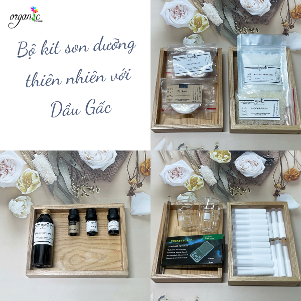 Đây là giải pháp gọn nhẹ cho bạn, một bộ kit làm son dưỡng môi từ dầu gấc, bao gồm đầy đủ nguyên liệu và dụng cụ làm được 30 thỏi son mềm, thơm, thành phần an lành, dùng được cho cả mẹ bầu và trẻ nhỏ.